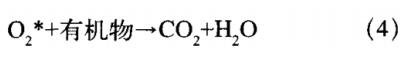 式(4)表明,處于激發(fā)態(tài)的氧氣分子與有機(jī)物發(fā)生反應(yīng),生成CO2和水蒸氣,對(duì)有機(jī)物溶劑沾污比較有效,具有清洗效率高、可選擇性好等優(yōu)點(diǎn)。