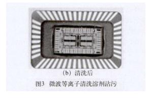 微電子封裝過(guò)程中產(chǎn)生的沾污嚴(yán)重影響了電子元器件的可靠性和使用壽命。研究表明,微波等離子清洗能有效增強(qiáng)基板的浸潤(rùn)性,降低芯片和基板共晶焊界面的孔隙率,同時(shí)也能清除元件表面的氧化物薄膜和有機(jī)物沾污,經(jīng)過(guò)等離子清洗,其鍵合焊接強(qiáng)度和合金熔封密封性都得到提高。