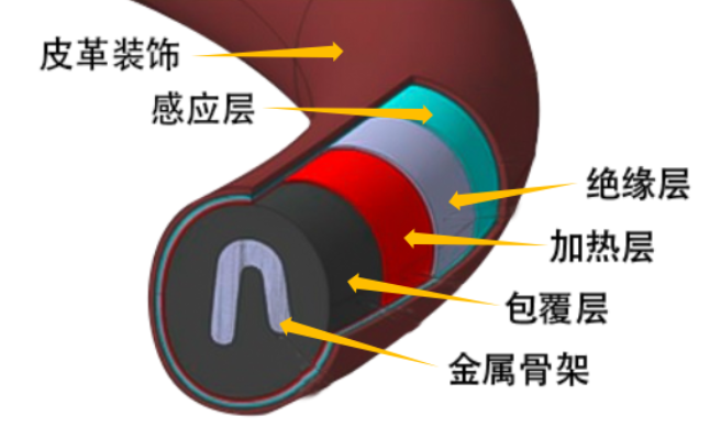 方向盤有多層結構組成,包括金屬骨架、發泡包覆層、皮革等,一些車型還有發熱層、傳感器層等。